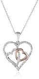 #4: Diamond Triple Heart in Sterling Silver with 18k Rose Gold Plated Pendant Necklace (1/6 Cttw, I-J Color, I2-I3 Clarity), 18"
