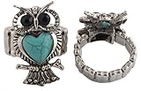 #7: 2 Pieces of Ladies Silver with Turquoise Owl on Branch Heart Shape Stone Belly Adjustable Stretch Finger Ring