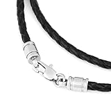 #9: Justeel Jewelry Genuine Leather Cord Stainless Steel Clasp Men Necklace Chain 3.0mm 4.0mm